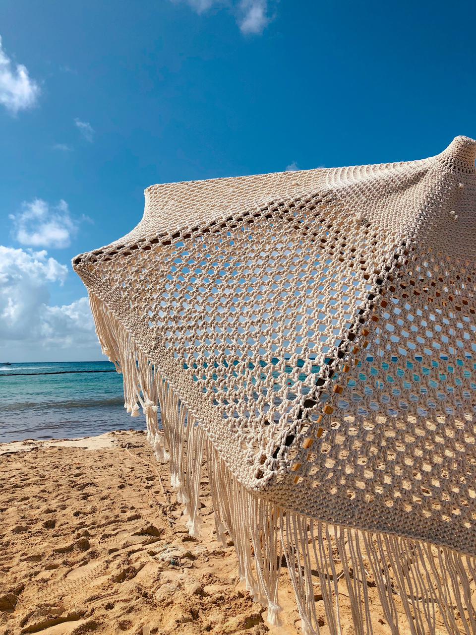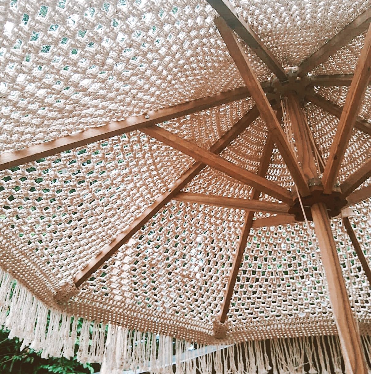 Delicadamente tejida a mano en técnica de crochet con hilo de algodón natural sobre una estructura resistente de madera de alta calidad (no incluye la base ). Los materiales de la sombrilla son resistentes a la intemperie, lo que lo hace adecuada para cualquier clima al aire libre o interior si prefieres. Ten en cuenta que esta pieza no está protegida contra los rayos UV.